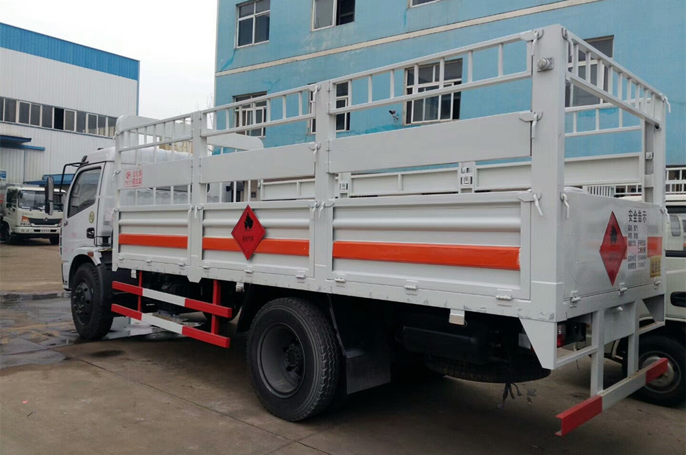 該車適用于運輸危險品。用于運輸具有**容器(瓶)包裝的易燃氣體(類項號:2.1):液化石油氣,壓縮甲烷或甲烷含量高的壓縮天然氣,乙炔,乙烷,丁烷,丙烯,丁烯,二甲醚,壓縮氧;用于運輸具有**容器(瓶)包裝的非易燃無毒氣體(類項號:2.2):二氧化碳,壓縮氧(氮,空氣,氦,氬,氖)。防護材料:Q23**碳鋼,連接方式:左右側(cè)面及后部防護均采用焊接連接,后部防護斷面尺(mm):**×50, 后部防護離地高度(mm):500。僅采用底盤子午線輪胎和帶ABS的底盤,該車前輪安裝盤式制動器,前置排氣管,裝配限速裝置,限速80km/h。安裝帶有衛(wèi)星定位功能的行駛記錄儀。ABS系統(tǒng)生產(chǎn)廠家及型號:襄陽東風隆誠機械有限責任公司,ABS/ASR-24V-4S/4M。隨底盤選裝前面罩,前保險杠,前組合燈具。上裝可選裝無柵欄。后部液壓尾板收起狀態(tài)的水平長度是250mm。危險貨物運輸車輛的車輛類型(FL型車輛)。 |