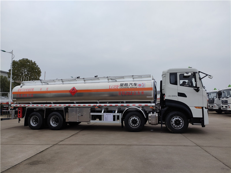 上裝配置:公告容積25.2方,柴油介質(zhì),罐體材料采用5083鋁合金材質(zhì),厚度6MM,帶泵,帶一全套歐標(兩個歐標罐口,一個海底閥,一個下裝油口,一個廢氣回收,一個防溢流探桿及插座),下裝油位置按標準,帶靜電卷盤,一個工具箱,帶折疊護欄,其余按鋁罐標準制作,配一個防火帽,兩根與罐體等長的輸油管,兩個滅火器,其余按廠內(nèi)標配,保證罐體及整車外形尺寸按公告制作。油漆:不做漆,貼反光條,貼反光帶,三個:易燃液體標,安全告示。