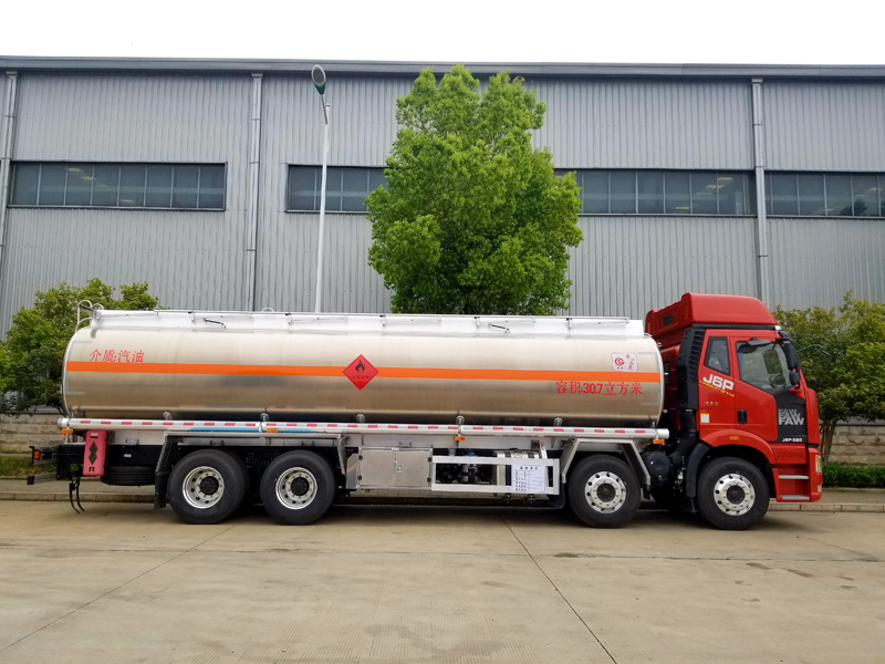 上裝配置:量:11885Kg; 罐體尺寸:(長×長軸×短軸) (mm): 9000/9200×2300×1500.罐體常配為單倉采用5182鎂鋁合金制作,罐體厚度大于等于5MM,帶山東齊魯油泵,泵箱配歐標(biāo)拉手鎖,一個單呼吸閥的歐標(biāo)罐口、一個海底閥,兩個自流閥,歐標(biāo)一套(含歐標(biāo)罐口,海底閥,油氣回收,防溢流探桿,下裝油口);C:可選裝大流量加油機(jī)(上海柏萊稅控加油機(jī)、三金稅控加油機(jī)、中升稅控加油機(jī))帶15米自動回位卷盤,兩根罐體等長輸油管、兩個滅火器,一個防火帽,靜電卷盤、安全告示鐵牌、工具箱、全車歐式鎖、牌照燈、車尾拖車鉤開孔、其余標(biāo)配。易燃液體貼“易燃”標(biāo),貼